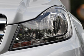 改款奔驰C级旅行车的前脸表现与改款C级轿车大同小异,而亮点在于一条从车顶划过的优雅曲线所塑造出的饱满尾部,以及A柱一直延伸到尾灯上沿的流畅腰线,再加上车门底部的镀铬装饰条与车顶的同色金属行李架,体现出了奔驰一贯追求的优雅与运动的平衡。同时,加入了新设计的前大灯造型,前保险杠部分下部刀锋的形状借鉴了改款奔驰E级的设计,并引入了LED日间行车灯。