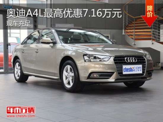 2008年11月16日,一汽奥迪国产A4L正式发布后便以时尚动感的外观便吸引了不少年轻人的目光。经过几年的发展,2013款车型也于去年8月正式上市,相比老款车型13款A4L在外观方面有较大改动,整体风格更偏运动。除此之外在配置方面全新A4L也有所突破,全系标配了发动机启停系统以及能量回收系统,通过这些节能配置,新A4L得以获得更好的燃油经济性。近日,编辑从北京运通博奥4S店处了解到,目前2013款奥迪A4L现车销售,部分车型最高优惠7.16万元。具体如下: