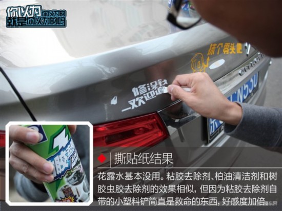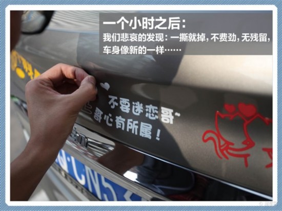 本抱着试试看的心态让那些乱七八糟的贴纸在车上保持了七八个小时的时间,然后,再想撕下来就真的很不容易了……