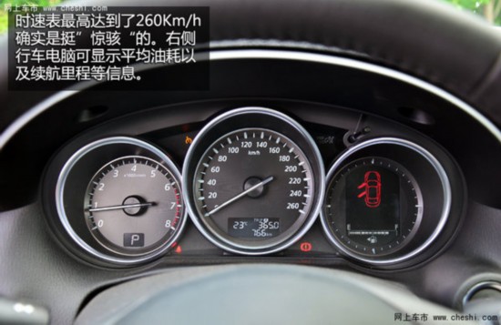 仪表盘可以看出马自达两代车型的设计风格,由于马自达CX-7属于上一代车型,所以在内饰方面与上一代马自达6有些相似橙色的背景灯,而马自达CX-5则采用了全新的设计风格白色的背景灯与的彩色的行车电脑显示屏。