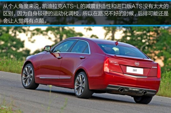 凯迪拉克ATS-L的悬挂硬度与进口版ATS相同,不过由于车身重量增加了50kg,所以特别增加了后悬挂弹簧的长度,这是为了让车身姿态更加好看,与进口版ATS保持一致。