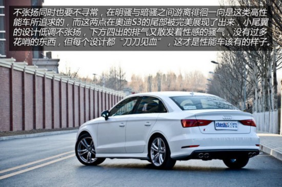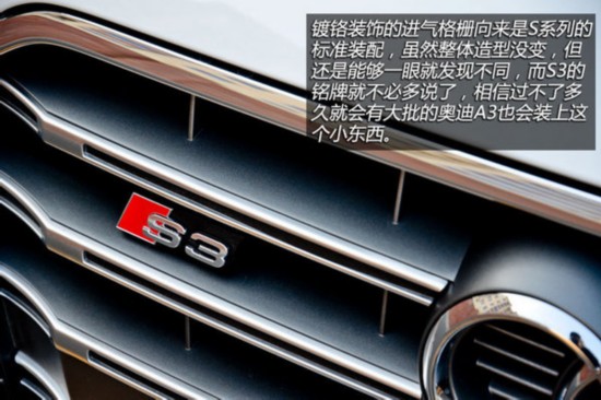 大体外观的相同并不意味着奥迪S3设计上的平庸,对于一辆S系列的车型来说,细节方面的烘托才是重中之重,镀铬装饰的进气格栅与更富张力的雾灯罩就是它与普通车型最大的区别,不过在试驾之后,我还是觉得S3在雾灯罩部分的设计还是相对有些保守了,也许再张扬一些才能够真正配得上S3的性格。