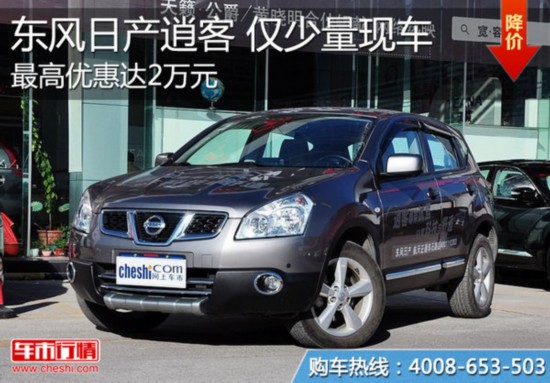 近日,笔者了解到,店内东风日产逍客仅有少量现车。售价方面,近期购买逍客,部分车型最高可享现金2万元优惠,最低仅售13.38万元。具体如下: