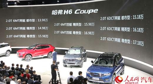 人民网上海4月21日电(李卓)在刚刚开幕的2015上海国际车展上,长城汽车宣布哈弗H6 Coupe正式上市,哈弗H6 Coupe共提供8款车型,售价13.98万——17.18万元。哈弗H6 Coupe定位为轿跑式运动型SUV,其运动化风格的时尚设计是其最大的卖点。