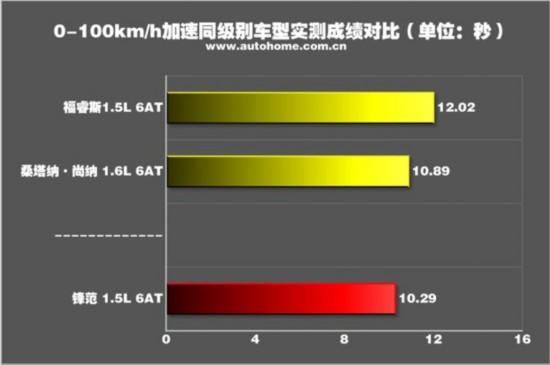 聊完了日常驾驶,最后再让我们看一看全新锋范在性能测试中的成绩如何。在0-100km/h加速中,由于CVT变速箱的保护,起步时转速被限制在2000rpm以内,动力没能完全释放,不过即便如此,全新锋范还是跑出了10.29秒的成绩,只比官方公布的数据慢了0.09秒。