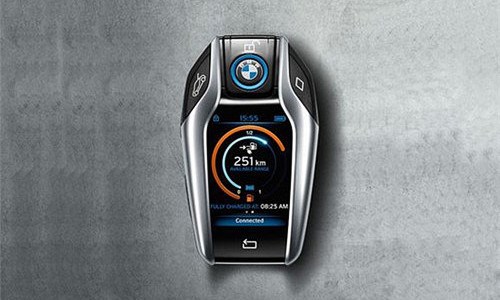 当然,科技感十足的不单单是车本身,其钥匙也是如此。这把钥匙就是宝马i8的智能密钥卡,它具有高清晰度的LCD显示屏,用以显示诸如剩余电量、剩余油 量、续驶里程等各类有用的信息,并允许车主远程设定车内温度。除了实用性以外,科技感十足的外观也是吸引眼球的利器。不得不说这是一把非常智能、非常酷的 车钥匙。当LCD显示屏亮起的那一刻,着实是夜店里装逼的首选。