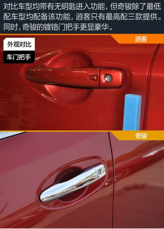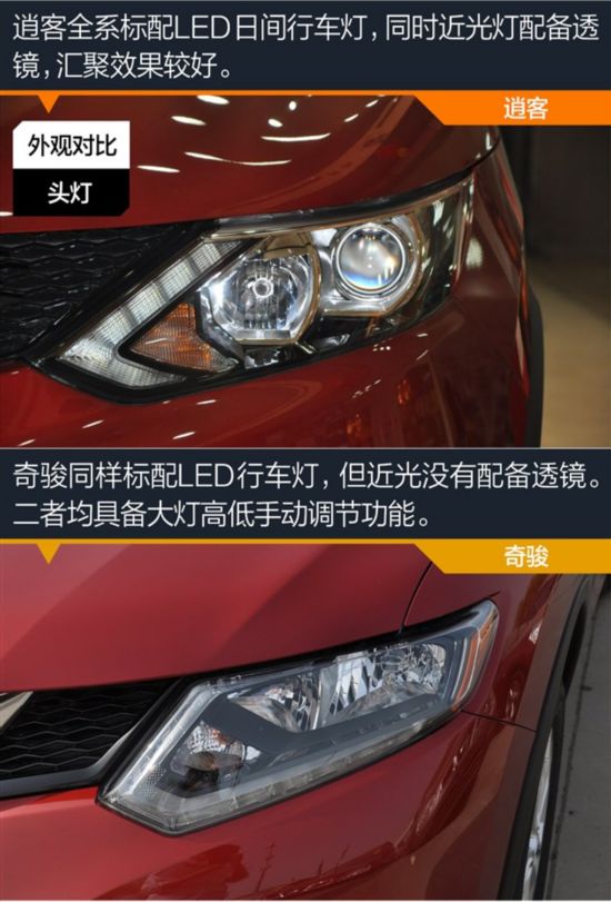 逍客的1.2T动力诱人,但是短时间内还不会引入国内,从仅有两款车型来看,或许很长时间内2.0L车型仍是逍客的唯一选择。奇骏最热销的是2.0L舒适版,优惠后的全国最低报价为16.48万元(点击进入报价页面)与逍客豪华版相当,恰好这两款车均为我们在购车手册中推荐的车型,今天我们就让他们来一较高下。