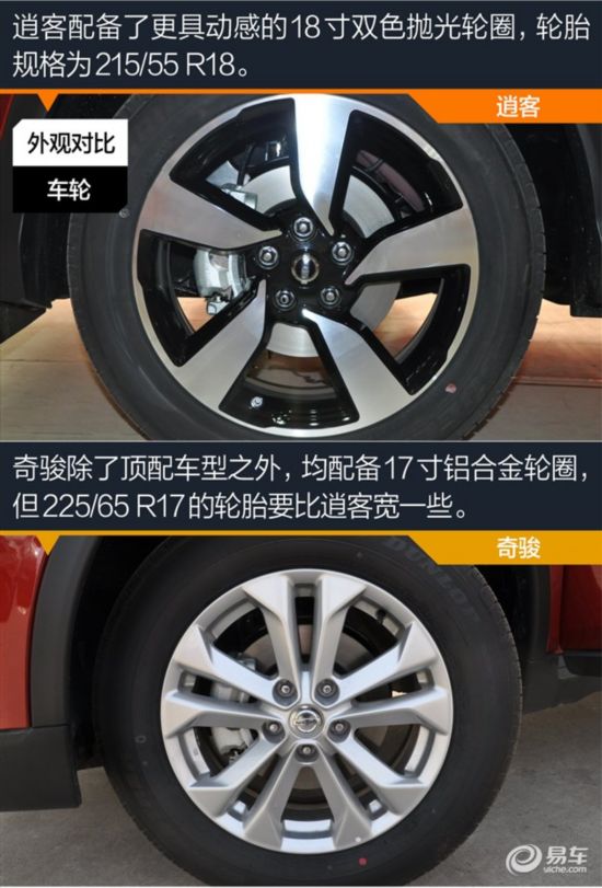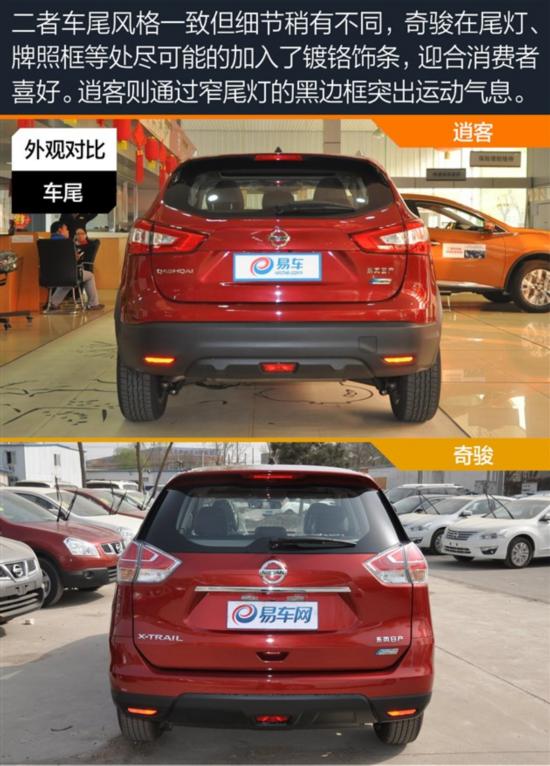 因此,如果您不是刻意追求小尺寸车身、亮闪闪的车顶行李架和轮圈,奇骏的外部配置更加出色。