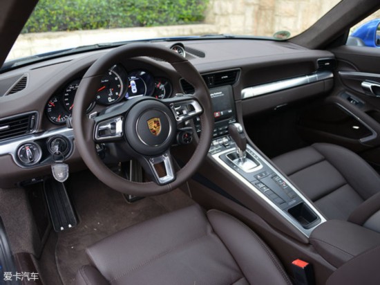 内饰属于豪华运动风格,精湛的做工展示着斯图加特式的严谨,大量平直的线条非常硬朗,标志性的五连环仪表盘依然得以沿用,全新911Turbo标配类似918 Spyder的运动方向盘,右下角的圆形按钮可以选择四种驾驶模式,分别为:标准、运动、运动+以及自定义。