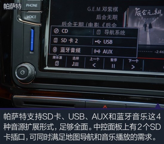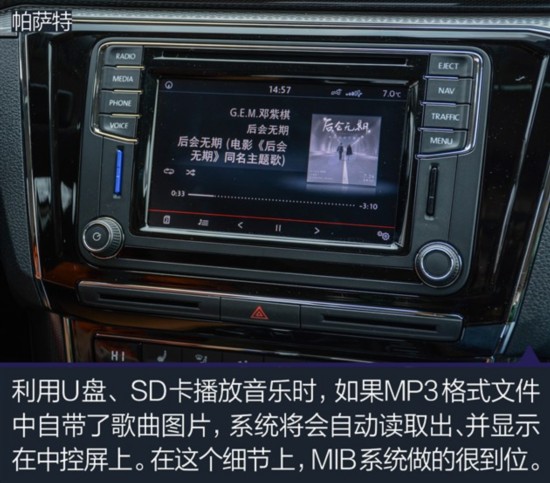编辑点评:帕萨特的这套MIB多媒体系统已经显得足够成熟,它在播放音乐、接打电话等环节上提供了足够丰富的功能,操作便利性也值得称赞,除了导航系统之外,它几乎不会出现让用户手忙脚乱的现象,整体表现值得认可。