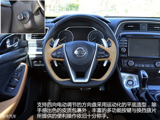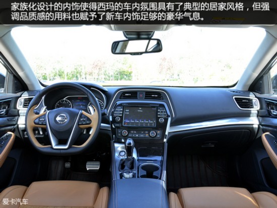 和画风明显趋于运动的外观相比,西玛的内饰氛围则总体延续了日产对居家气息与豪华质感的一贯追求。采用家族化内饰设计的中控台略向主驾驶一侧倾斜,整体造型依旧周正简洁。而采用搪塑工艺的软性材质和醒目的橙色缝线装饰则提供了较为出色的品质感。不仅如此,前排中央通道两侧和门板手枕位置的皮质包裹,以及门板内衬大面积覆盖的高档欧缔兰(Alcantara)材料,也体现出日产在用料方面的贴心到位。