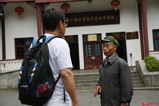 娄山关陈列馆前,老红军为我们讲述娄山关战役