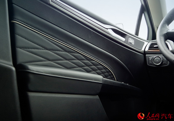 2017款蒙迪欧的车内设计风格没什么大变化。但是请注意,仅仅是风格没变,在细节上的变化则非常多。比如眼尖的人会立刻注意到它中控区域与门板上大面积覆盖了手感细腻的皮革材质,这可是海外版Vignale版才有的待遇。(Vignale为福特在海外新推出的高端产品线)。