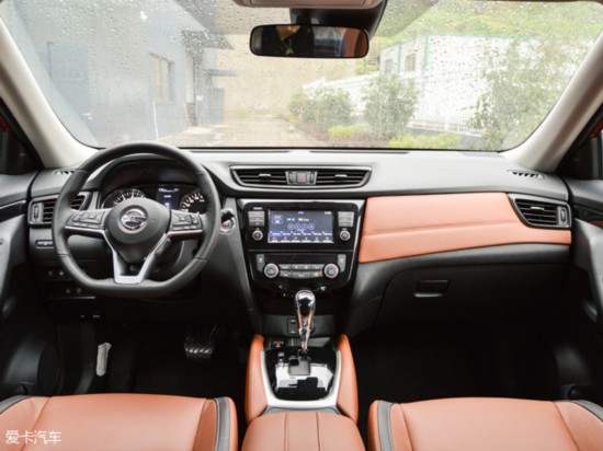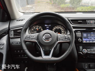 奇骏的内饰采用双色配色,中控台采用软性材质包裹,方向盘改为D字型方向盘,左侧为多媒体按键,右侧为ICC智能巡航系统控制和蓝牙电话功能按键,造型更加年轻化,并且采用了真皮包裹,手感较好。另外,方向盘左侧下方的控制区域集成了全景影像、方向盘加热、电动尾门开关等功能按键。