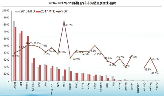 11月进口车平稳增长 斯巴鲁销量下降超三成